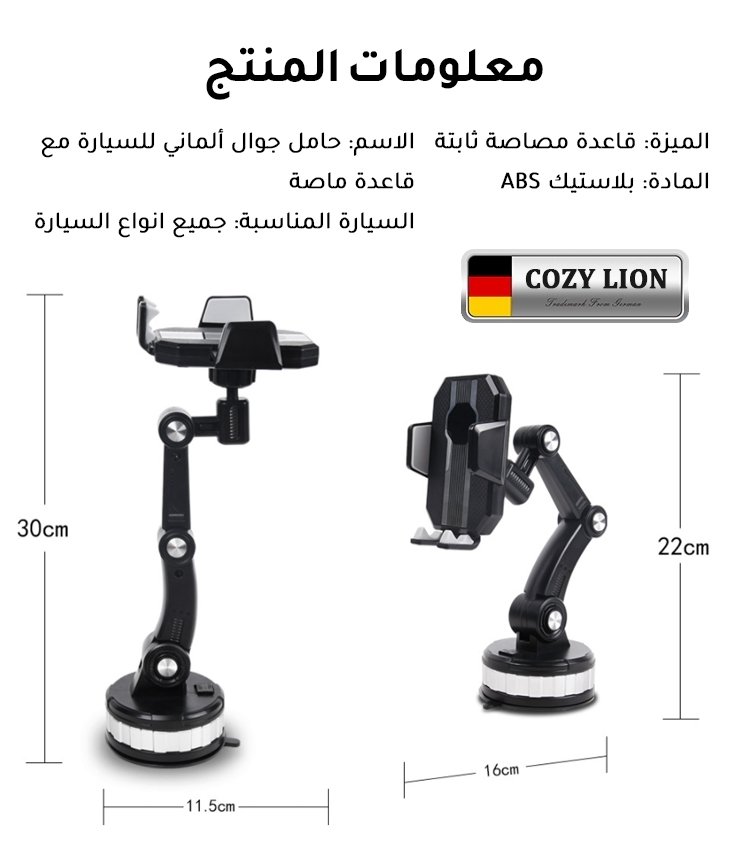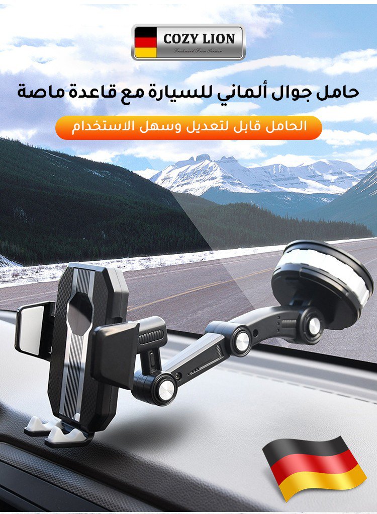 حامل جوال ألماني للسيارة مع قاعدة ماصة