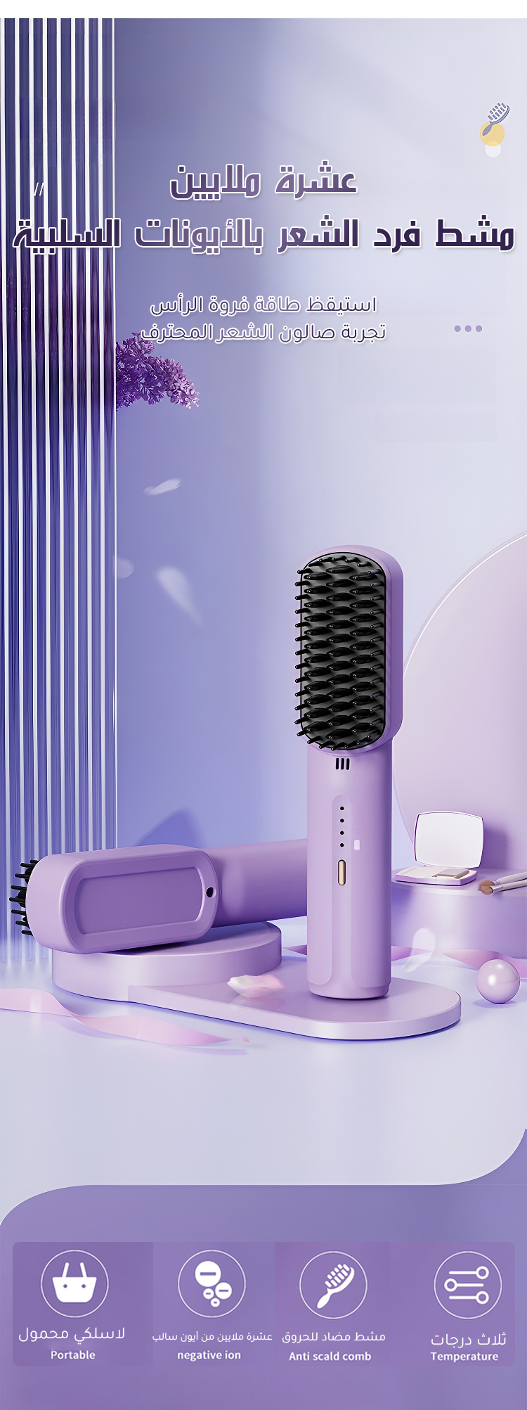(الأيونات السلبية لا تضر الشعر) مشط فرد الشعر اللاسلكي المحمول الصغير